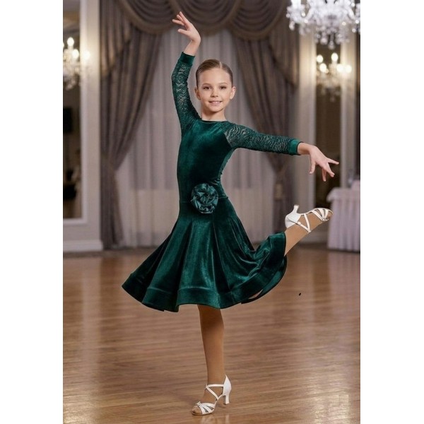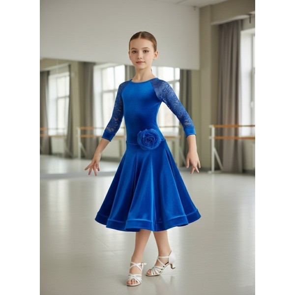 Бейсик велюровый рукава реглан из гипюра, юбка 8 клиньев, цветок из органзы или атласа, регилин закрытый